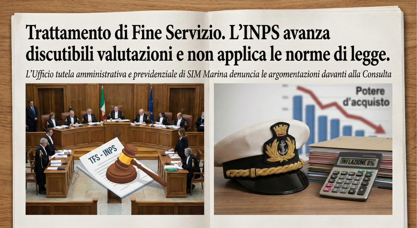 L’attenzione di tutto il comparto pubblico e militare è rivolta all’udienza della Corte Costituzionale tenutasi il 10 febbraio scorso. Al centro del dibattito, monitorato con attenzione dall’Ufficio tutela amministrativa e previdenziale di SIM Marina, c'è la questione della dilazione del pagamento del Trattamento di Fine Servizio (TFS).