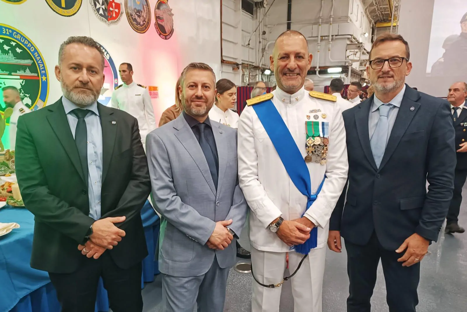 Taranto 18 ottobre 2025 passaggio di consegne tra il Comandante della Seconda Divisione Navale Cedente Ammiraglio di Divisione Andrea Petroni e l'accettante il Contrammiraglio Andrea Ventura